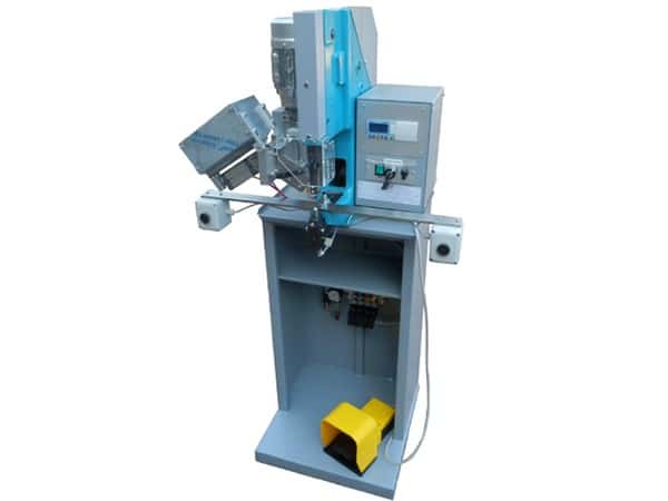 Automatic electric-powered riveting machine for applying semi-finished rivets with lengths between 15 and 30 mm.